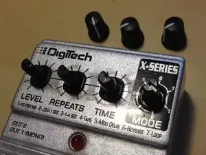 Снимите ручки с потенциометров, крепко схватив их и потянув от корпуса.