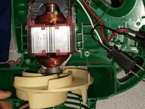 Очистите пыль, если это необходимо, затем аккуратно верните мотор на место, убедившись, что оба язычка на моторе попадают в соответствующие пазы. Второй язычок не видно, так как мне пришлось его обрезать.