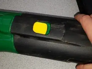 Убедительно нажмите на жёлтую кнопку и сдвиньте насадку воздуходувки.