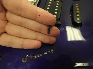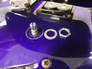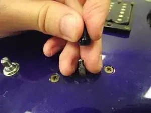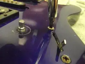 Используйте крестовую отвёртку Phillips 2, чтобы выкрутить два 7/16" винта переключателя звукоснимателей.