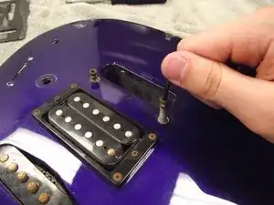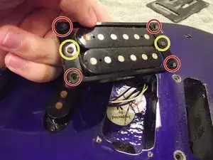 Используя крестовую отвёртку Phillips #2, выкрутите четыре рамочные винта 9/16" из пластикового корпуса хамбакера.