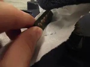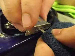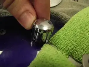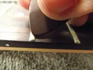 Используя плоский предмет, например плоскогубцы, плоскую отвёртку или монету, аккуратно подденьте ручку, чтобы снять её с каждого потенциометра. Для снятия ручки может потребоваться приложить значительное усилие.