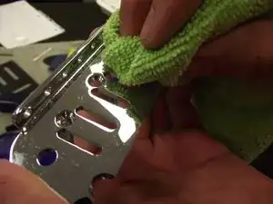 Отполируйте корпус гитары и детали микрофибровой тканью.