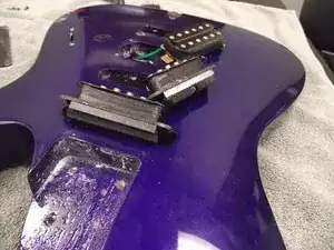 Осторожно извлеките звукосниматель из корпуса гитары.