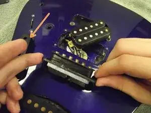 Снимите крышку, чтобы открыть узел моста/тремоло.