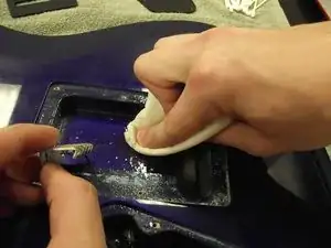 Удалите частички ржавчины вокруг полюсов ватной палочкой.
