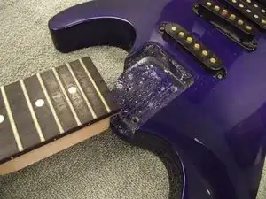 После того как все винты будут сняты, аккуратно отведите гриф от корпуса гитары и отложите.