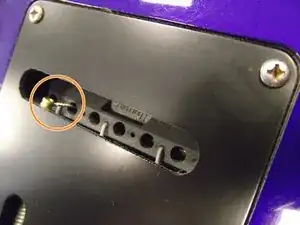 Найдите заднюю крышку моста/тремоло в центре задней части корпуса.