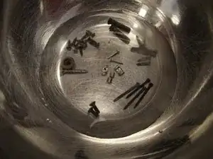 Положите маленькие сильно заржавевшие детали, такие как винты, в раствор. Оставьте их замачиваться на 2 1/2 часа.