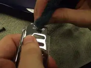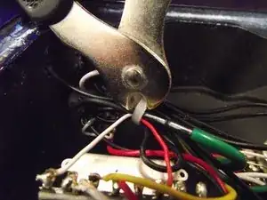 Будьте осторожны, чтобы не повредить чёрный провод, припаянный к пластине крючков.