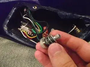 Вытащите потенциометры в отсек проводки. Снимите по три шайбы с каждой ручки и отложите.