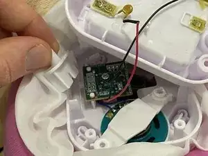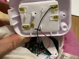 Осторожно поднимите пластиковую крышку шасси. Следите, чтобы не оборвать тонкие провода, соединённые с крышкой.