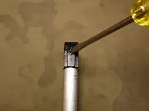 Опять же, специализированный инструмент предпочтителен, но можно использовать плоскую отвёртку — действуйте очень аккуратно, так как отвёртка будет контактировать с центральной насадкой клапана.