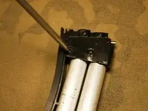 Снимите два шестигранных винта 2 мм. По одному с каждой стороны магазина.