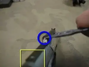 Тонкий штифт корпуса должен полностью выйти из оружия.