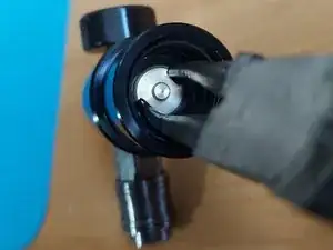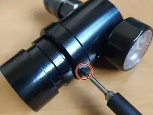 Очень важно сбросить все давление из регулятора перед началом его разборки. Вы можете сделать это, вставив отвертку с крестообразным лезвием в разъем быстросъемного соединения.