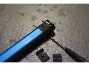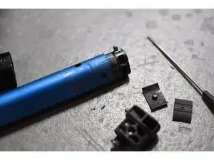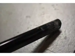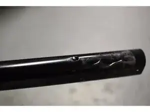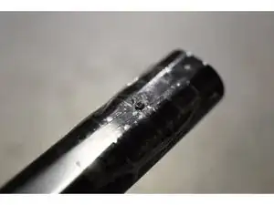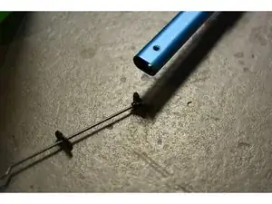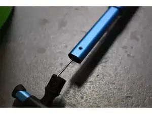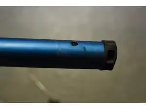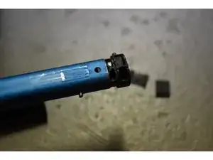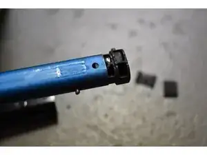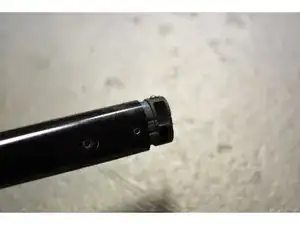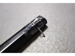 Теперь вытяните заклёпку. Опять же, заклёпка не абсолютно необходима — она держит внутренние штоки и предотвращает их чрезмерное выдвижение, но при нормальной эксплуатации внутренние штоки обычно не должны упираться в эту заклёпку.