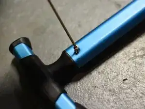 Используйте шестигранный ключ 2.5 мм, чтобы выкрутить два винта, удерживающих ручку, и снимите ручку. Возможно, придётся немного пошевелить её, чтобы снять.