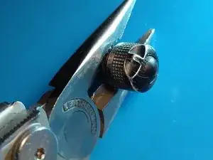 Сборка выполняется в обратном порядке, но клеить кнопку не нужно (маленькие пластиковые «заклёпки» теперь сломаны), так как пластиковый корпус из двух частей будет удерживать её при сборке.