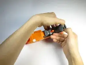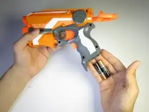 Осторожно разъедините корпус бластера, начиная от места расположения батарей.