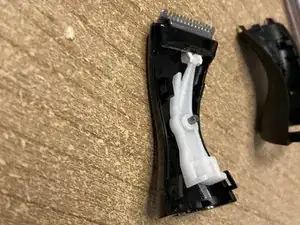 Я не выполнял серьёзный ремонт, но уронил прибор в тот же день, когда получил, и по ошибке собрал чёрные части вместе без белой детали, которая двигает лезвия. Впоследствии я не смог снова их разъединить и боялся сломать. Чтобы запомнить это и помочь другим, я решил задокументировать внутренние части, которые увидел.