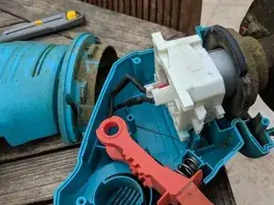 Открутите шесть винтов, теперь видимых в синей части. Разделите корпус на две части.
