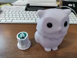 Внутри игрушки врезан световой модуль, приклеенный в резиновую полупрозрачную оболочку. Модуль установлен в углублённую чашу. Извлеките его, поддёвывая к центру и под кромку модуля. Действуйте неглубоко и не направляйте инструмент строго вниз. Мне пришлось использовать нож X-Acto, чтобы вытащить модуль.