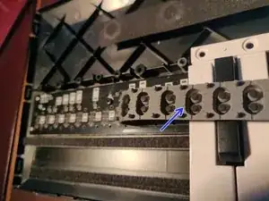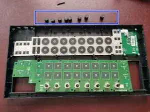 Снимите 8 колпачков поворотных ручек с передней части платы, просто потянув их. Теперь основную плату можно снять.