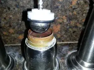 Разберите шаровой и седельный узел однорычажного кухонного смесителя Delta, чтобы проверить прокладки на наличие трещин и утечек или заменить кран.