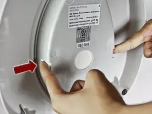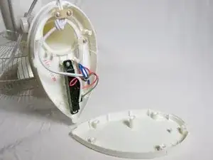 Найдите и удалите винт Phillips №1 длиной 14,5 мм на нижней части основания вентилятора.