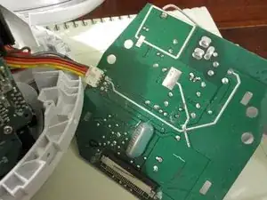 Отсоедините разъём питания (провода коричневый-красный-оранжевый-жёлтый) от основной платы.
