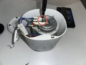 Удалите четыре винта прикрытия термistorа диаметром 10 мм, используя отвертку Phillips #0.