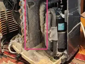 Нижняя система охлаждения будет забита материалом, попавшим в ребра охлаждения. Осторожно очистите вниз с помощью проволочной щетки — ребра очень хрупкие, и любые боковые движения могут их повредить. Ребра трудно очистить вокруг конденсаторного насоса и шлангов.