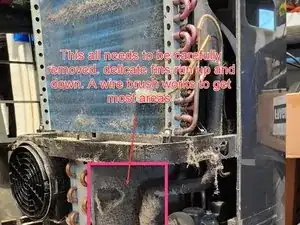 Будьте осторожны, чтобы ничего не повредить. Деревянная бамбуковая палочка полезна для получения фрагментов, которые щетка не может достать. Вакуумный очиститель с HEPA-фильтром также очень полезен для удаления этой грязи. Обязательно очистите всю грязь вокруг всего устройства и используйте проволочную щетку на верхних ребрах также.