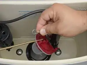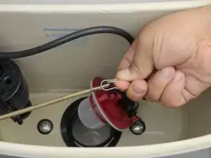 Сожмите пружинный замок, который соединяет цепь с рычагом бачка.