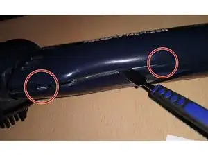 Аккуратно вставьте лопатку и нажмите на 2 обозначенных защелки, чтобы освободить верхнюю часть корпуса.