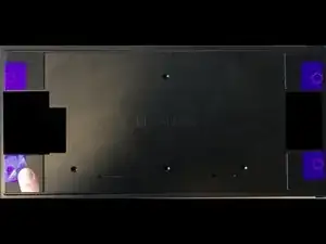 Здесь находятся еще 4 винта. Чтобы получить к ним доступ, нужно отшлифовать резиновые накладки. Если быть осторожным, можно обойтись без полного снятия. На этом изображении фиолетовые области обозначают места, которые я нашел относительно "безопасными" для отшлифовки, чтобы получить доступ к винтам и при этом аккуратно вернуть накладки на место.