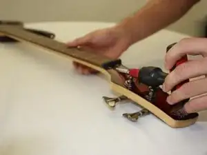 Полностью ослабьте все струны, поворачивая каждый колок против часовой стрелки. Продолжайте, пока в струнах не исчезнет натяжение.