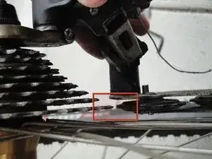 Проложите цепь вокруг передних звездочек, кассеты и переключателя.