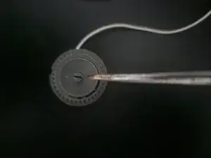 Используйте лопатку, чтобы приподнять крышку, открывая доступ к шестерне, в которой расположен шнур.