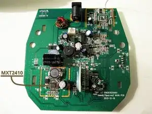 На основной печатной плате с разъёмом питания замените стабилизатор переключающего типа MXT2410 (корпус SO-8).