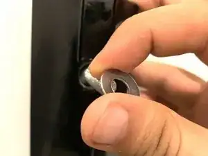 Снимите ножку и открутите внутреннюю шестигранную гайку.