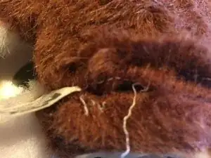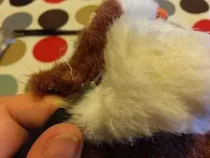 Найдите шов. Я раскрыл Гизмо по заднему шву примерно на полдюйма от основания и использовал небольшой распарыватель швов, чтобы аккуратно распустить стежки по одному.