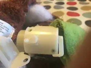 Хотя большинство таких игрушек, вероятно, ломаются так же, как у меня, у вас может быть другая проблема. Механизм управления головой имеет круговой фиксатор, который надевается на выступ на основании, часть, прикручиваемую с другой стороны, и паз, принимающий вращательную кнопку для создания движения.