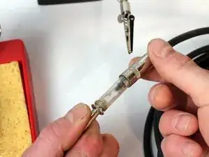 Наденьте пластиковую изолирующую втулку на корпус штекера.