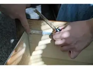 С помощью карандаша отметьте контрольные точки, где находится направляющая балка в верхней части ящика.
