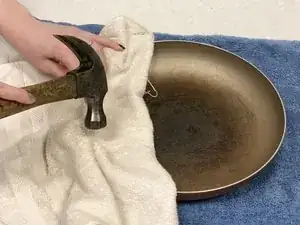Не бейте молотком слишком сильно, иначе сковорода прогнётся в противоположную сторону.