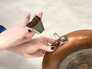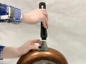 Снимите ручку и металлическую планку, чтобы обнажить основание ручки сковороды.