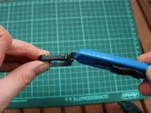 Используйте канцелярский нож, чтобы поддеть небольшую крышку, которая скрывает внутренние контакты.