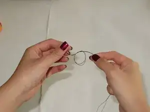 Сложите концы нитки вместе и завяжите узел.